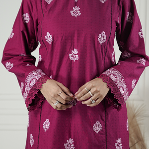 Top: Embroidered Long Length Shirt with embroidered front and left right panel