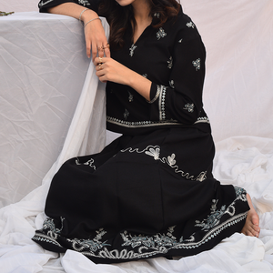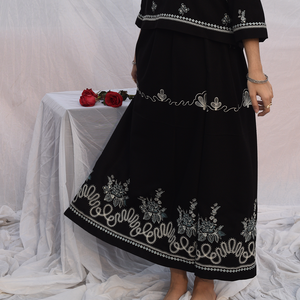 Bottom: Long skirt with embroidered borders and panels