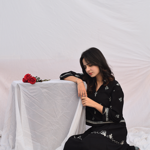 Top: Short baggy embroidered shirt