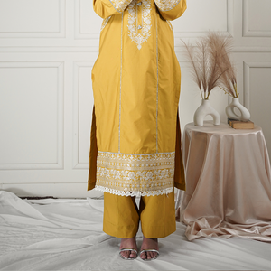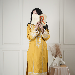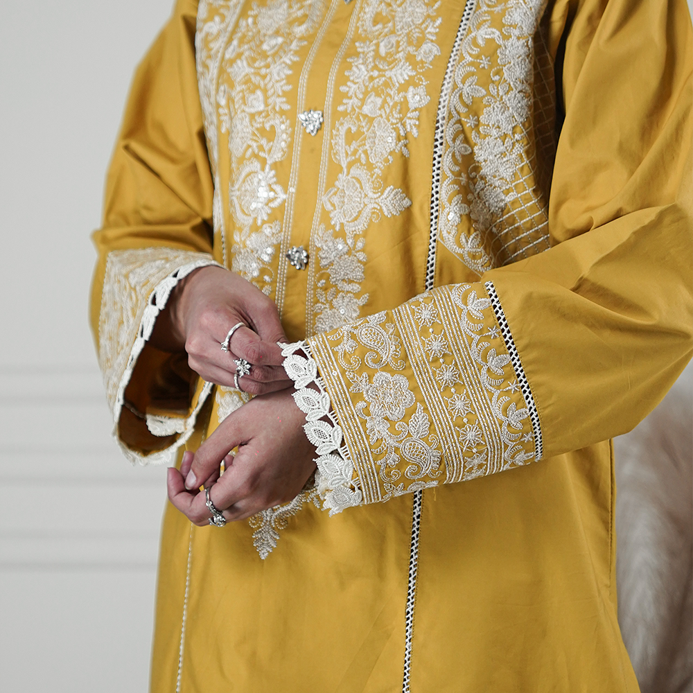 Top: Embroidered Long Length Shirt with embroidered sleeves and sitara work on all over the embroidery